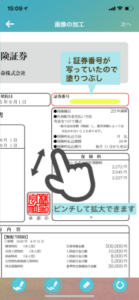 ▼その先の加工画面で、写り込んだ個人情報を塗りつぶし